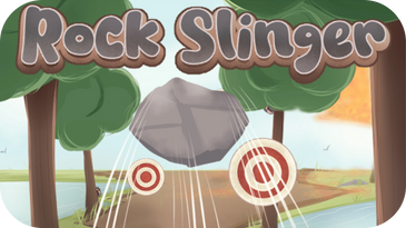 Launch a rock and try to hit the furthest possible target. Gold reward can be used to upgrade the slingshot, allowing the projectile to travel further and hit more valuable targets.
